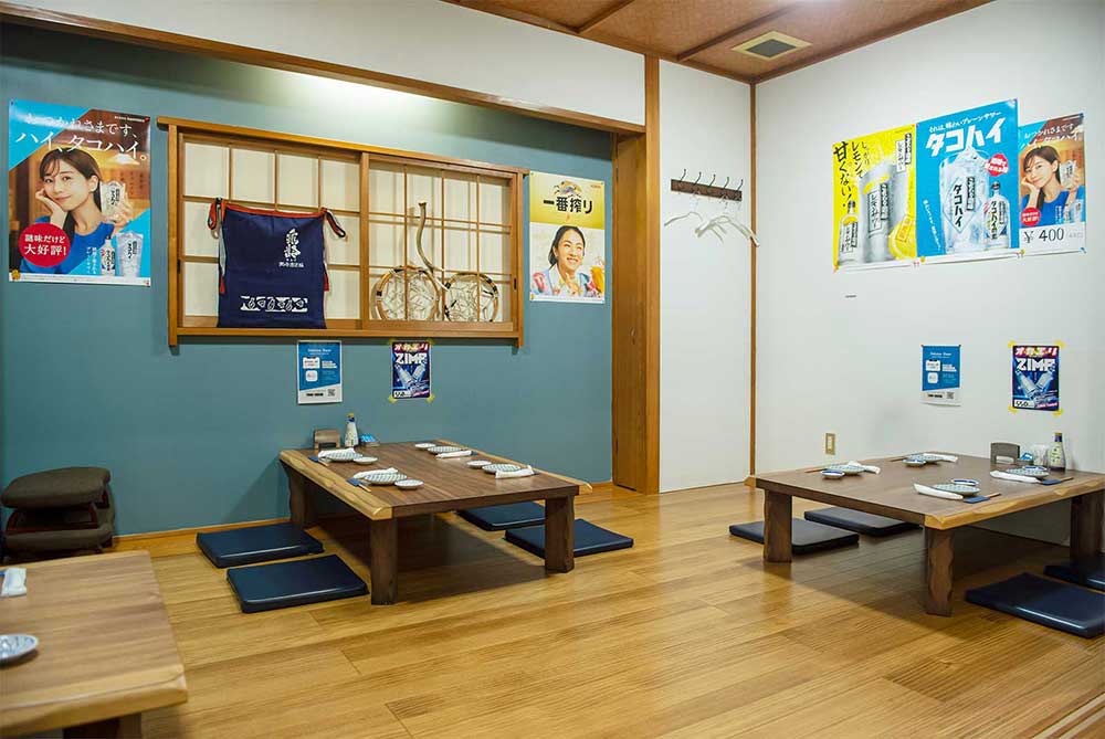 20席(カウンタ―、小上がり板座敷) 座敷席全体の貸切(最大16名様をご収容可能)利用も可能です。 |