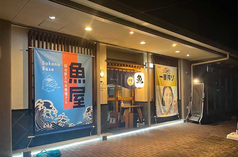 自治医大駅から徒歩圏内にあるSakana Base (サカナベース)。店名のとおり、様々な鮮魚料理が味わえる魚料理のお店で、魚市場や産地から旬の魚を毎日取り寄せております。仕入れた魚の種類に応じ、お造りや焼き・フライ・煮付など、その魚を最も美味しく頂ける調理法でご提供。店内は、小上がりの板座敷とカウンタ―席を配し、座敷席は最大16名様をご収容OK!少人数から団体様まで様々な用途でお立ち寄りください!